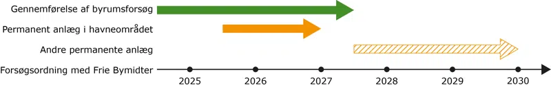 Den nærmere tidsplan for de to følgende forsøgs år i 2026 og 2027 fastlægges ud fra vores erfaringer fra forsøgs-år 2025.